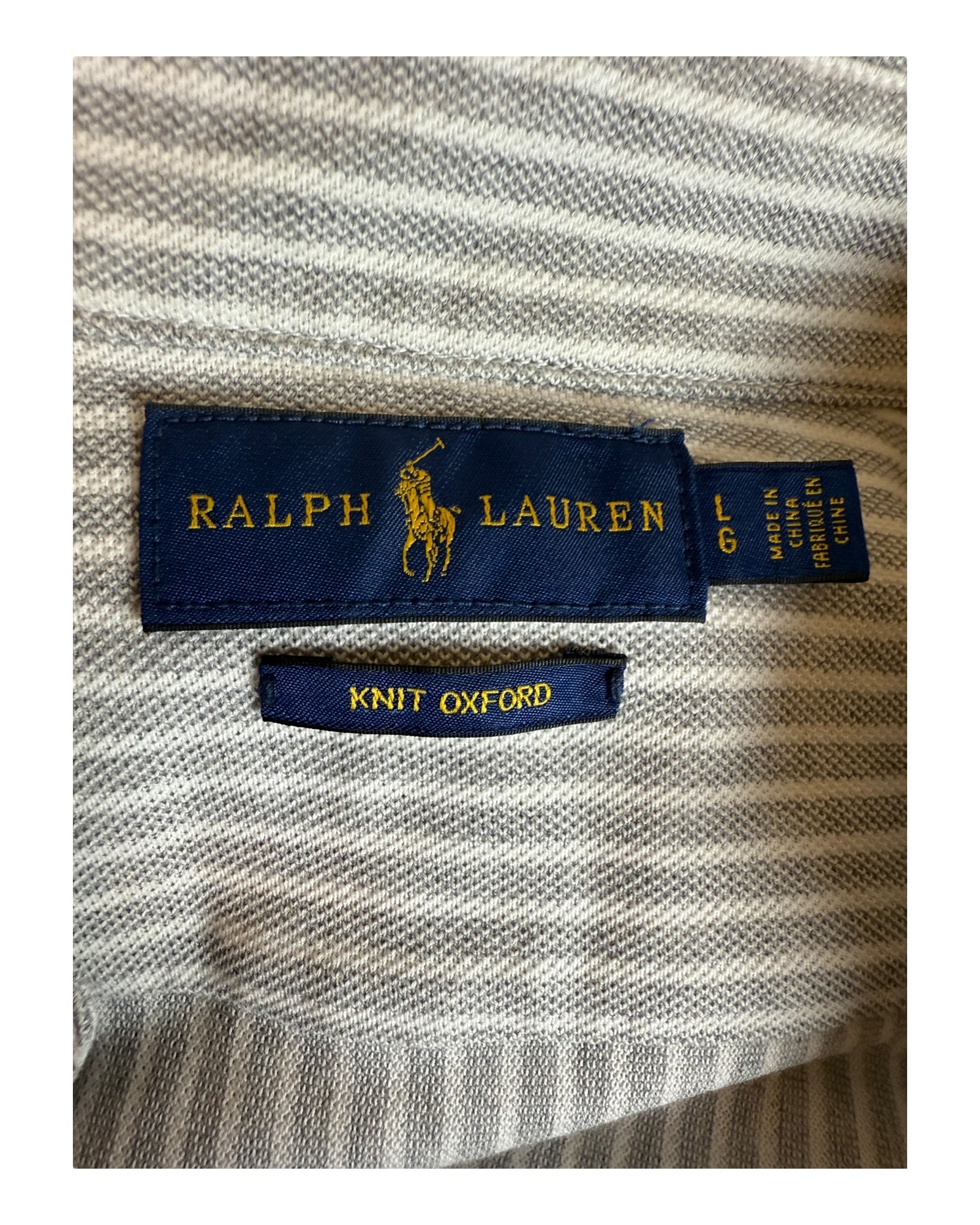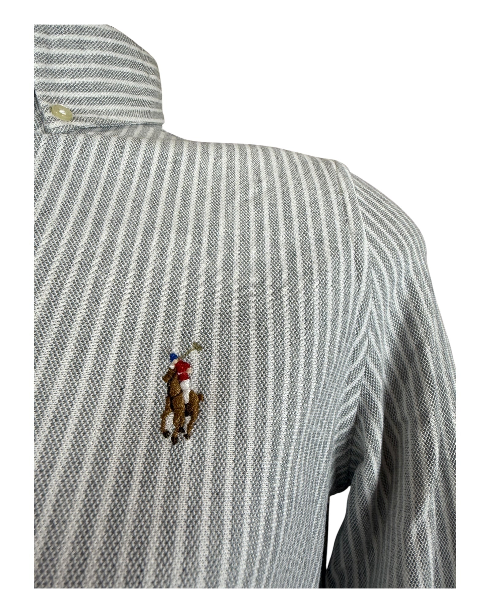 Polo Ralph Lauren Knit Oxford Bluse grau weiß gestreift Größe L
