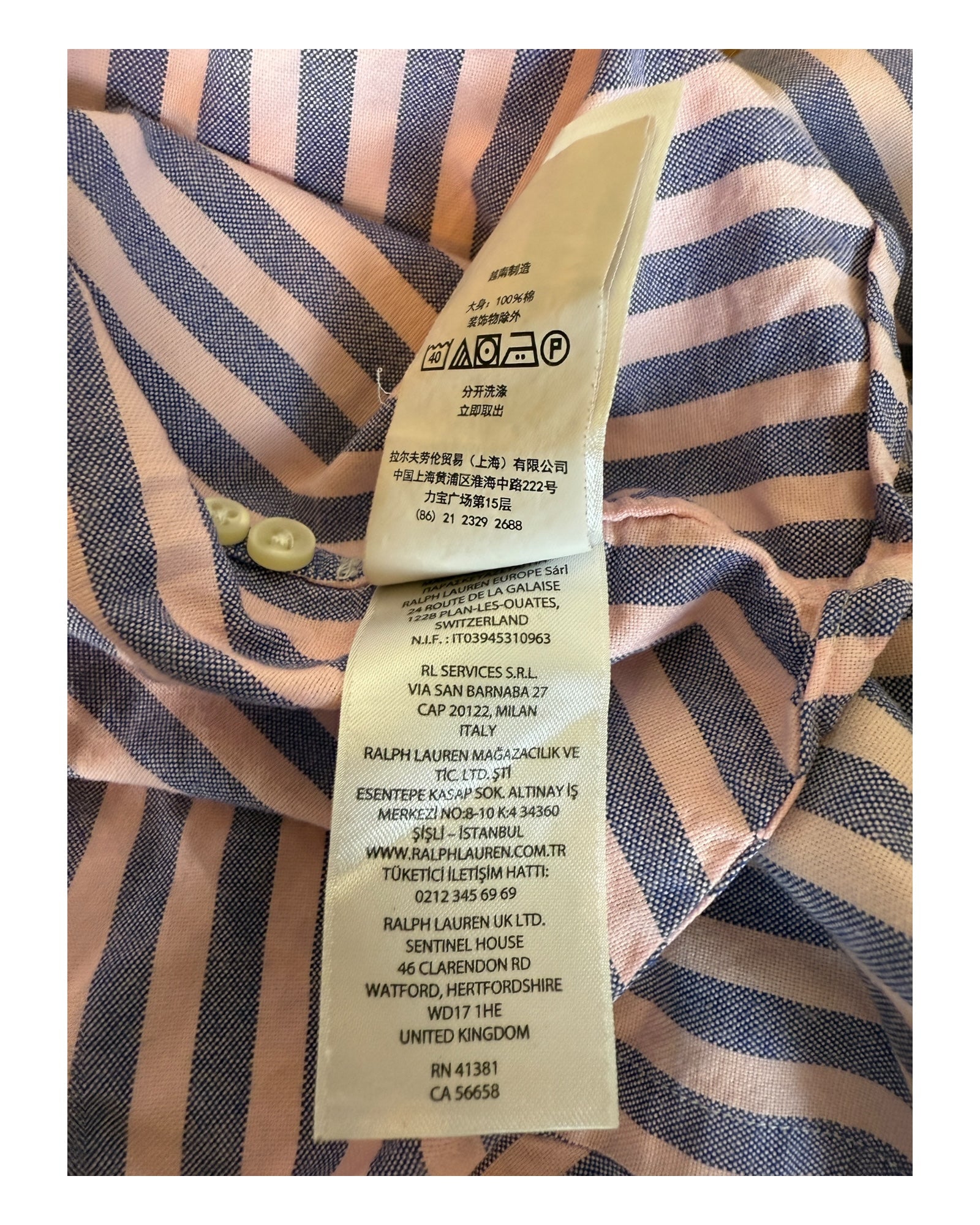 Polo Ralph Lauren Oxfordhemd hellblau rosa gestreift Größe L