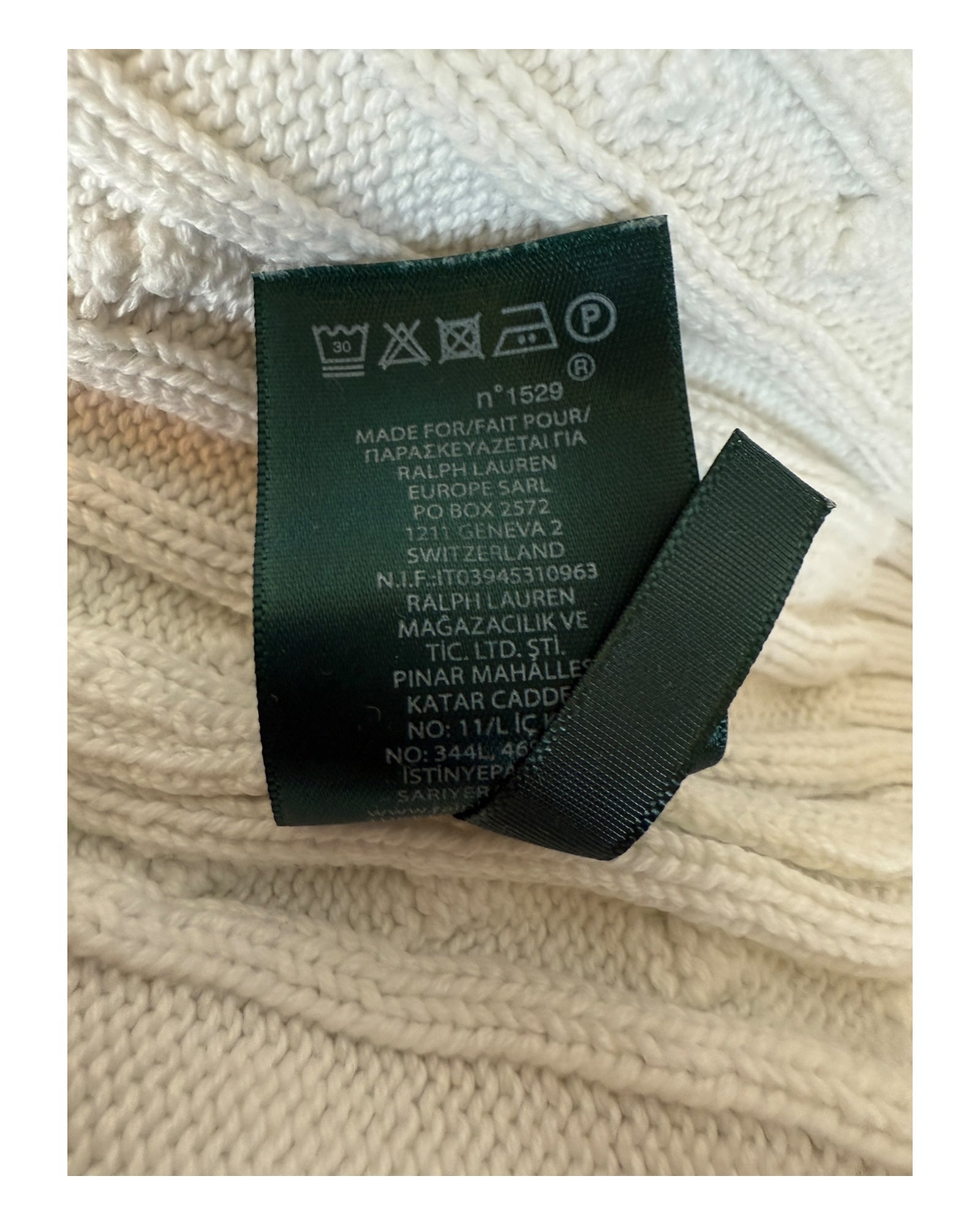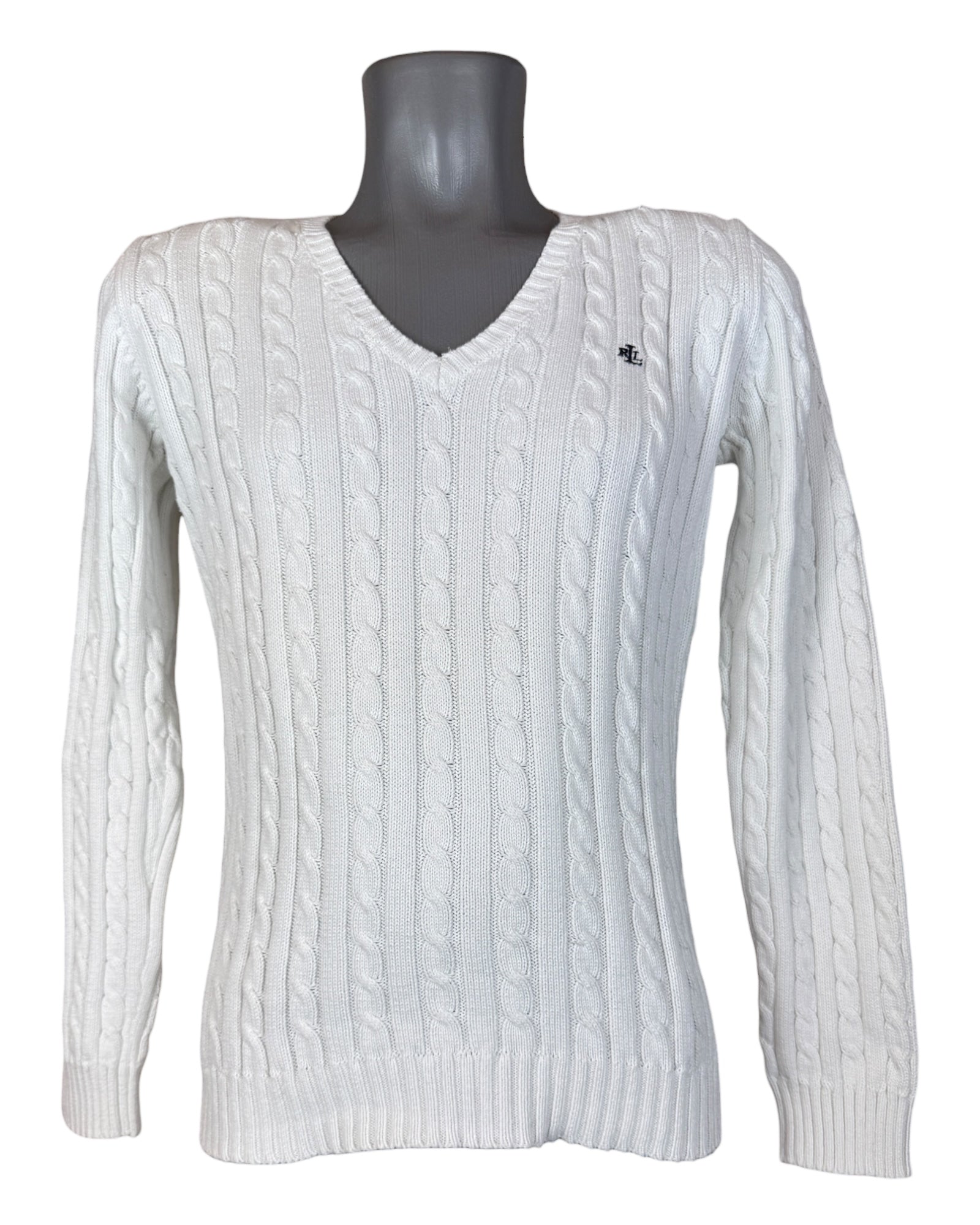 Polo Ralph Lauren Zopfmuster Pullover weiß Größe S