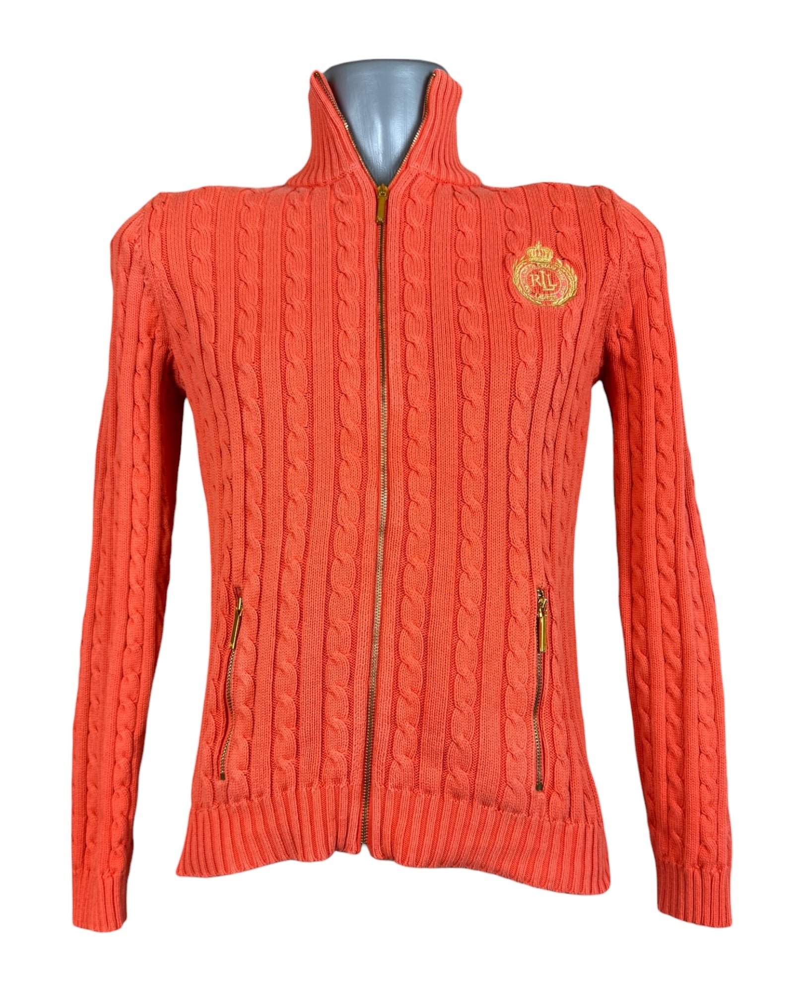 Polo Ralph Lauren Zopfmuster Strickjacke orange Größe S